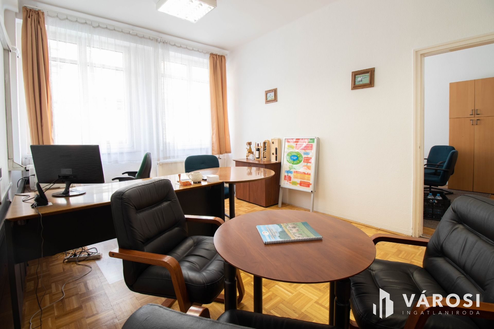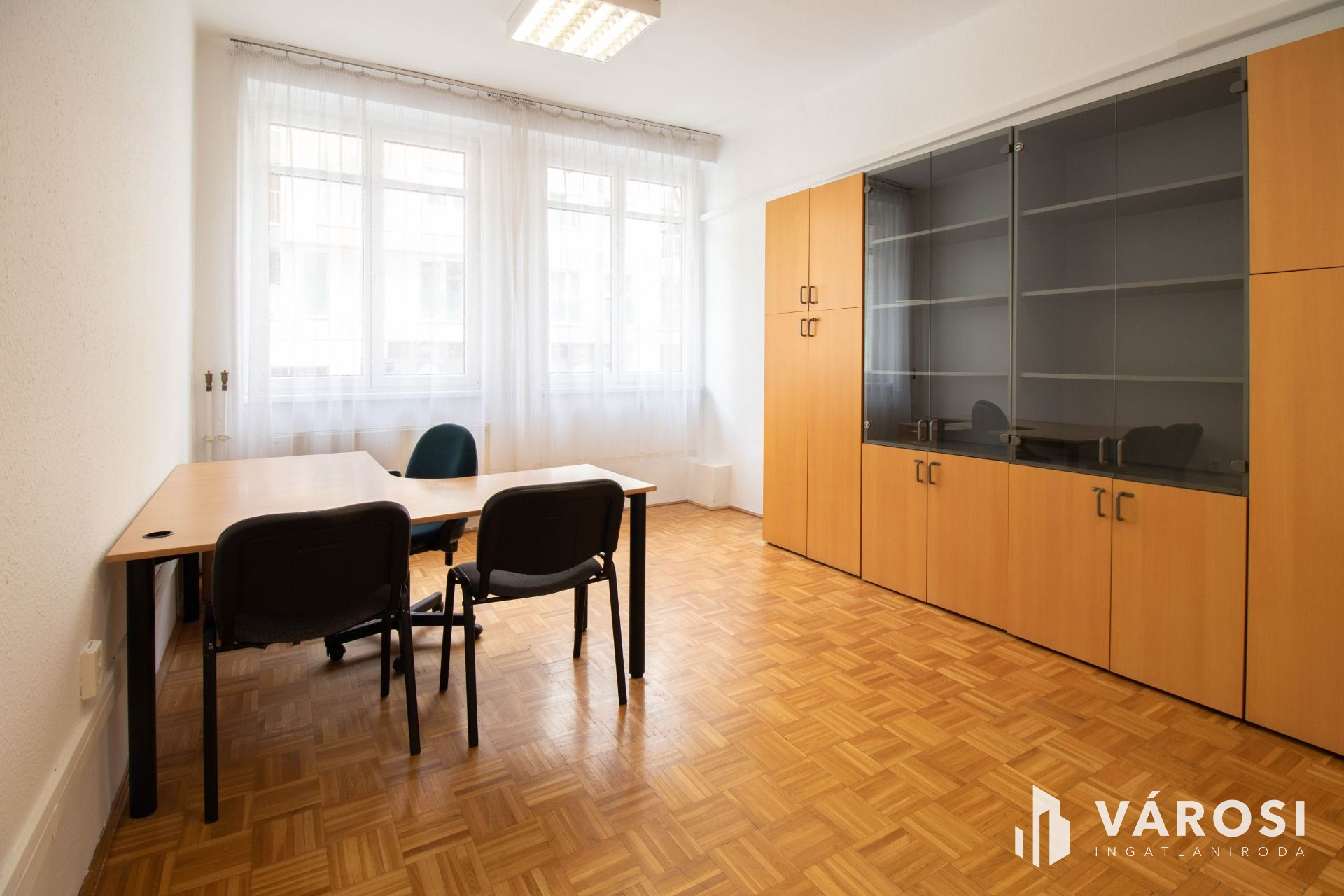 THE OFFICES OPEN FROM AN INDEPENDENT, LOCKABLE CORRIDOR USED ONLY BY THE TENANT, they are 18-20 m2 in the layout according to the floor plan, they are oriented to the east, they have parquet floors, they are air-conditioned and they are furnished, as can be seen in the photos. However, it is also possible to rent unfurnished by agreement.