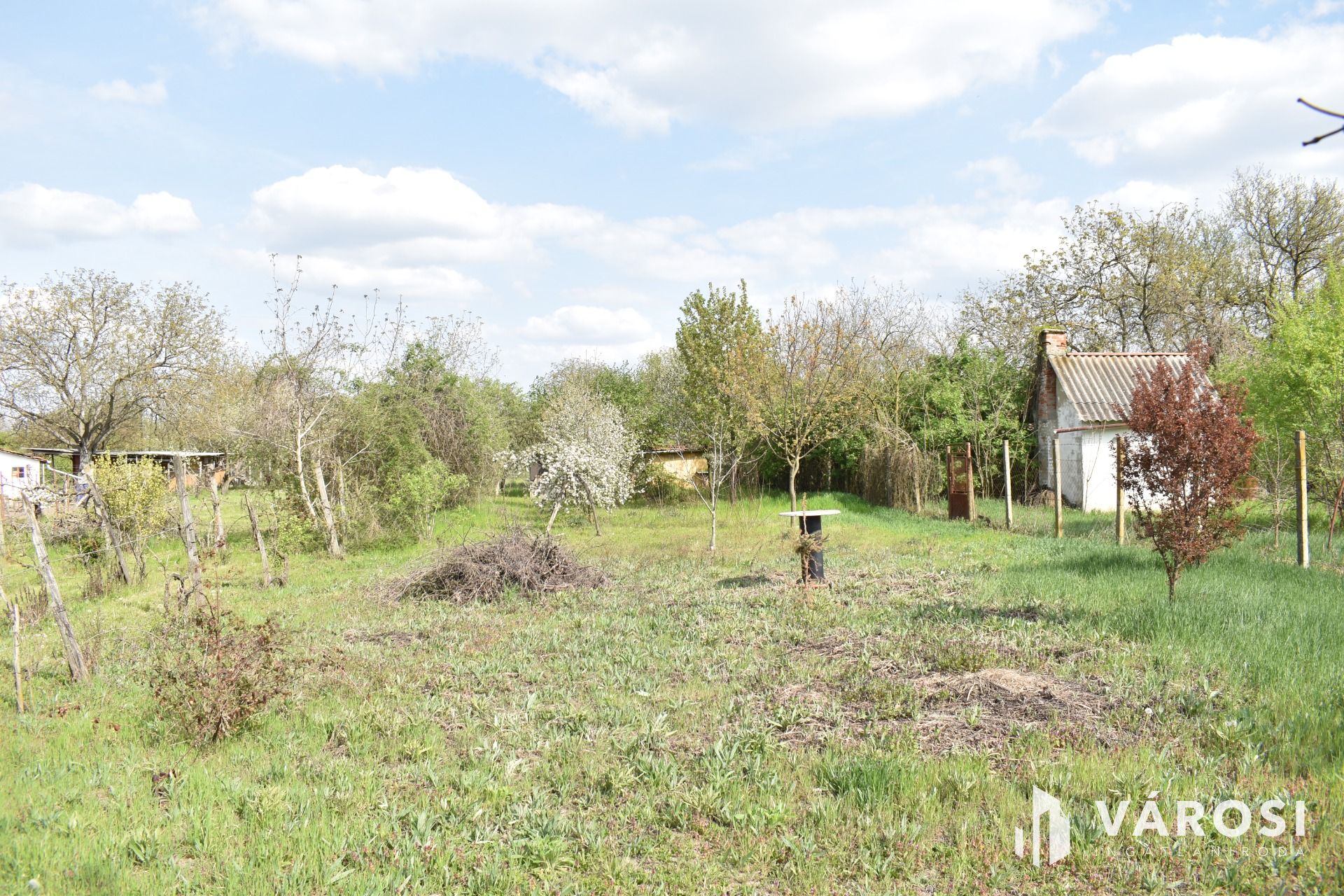 A terület teljesen körbe van kerítve, azon egy fúrt kút és egy tégla falazatú gazdasági épület található. Az áram bekötése is megtörtént, saját villanyórával rendelkezik.