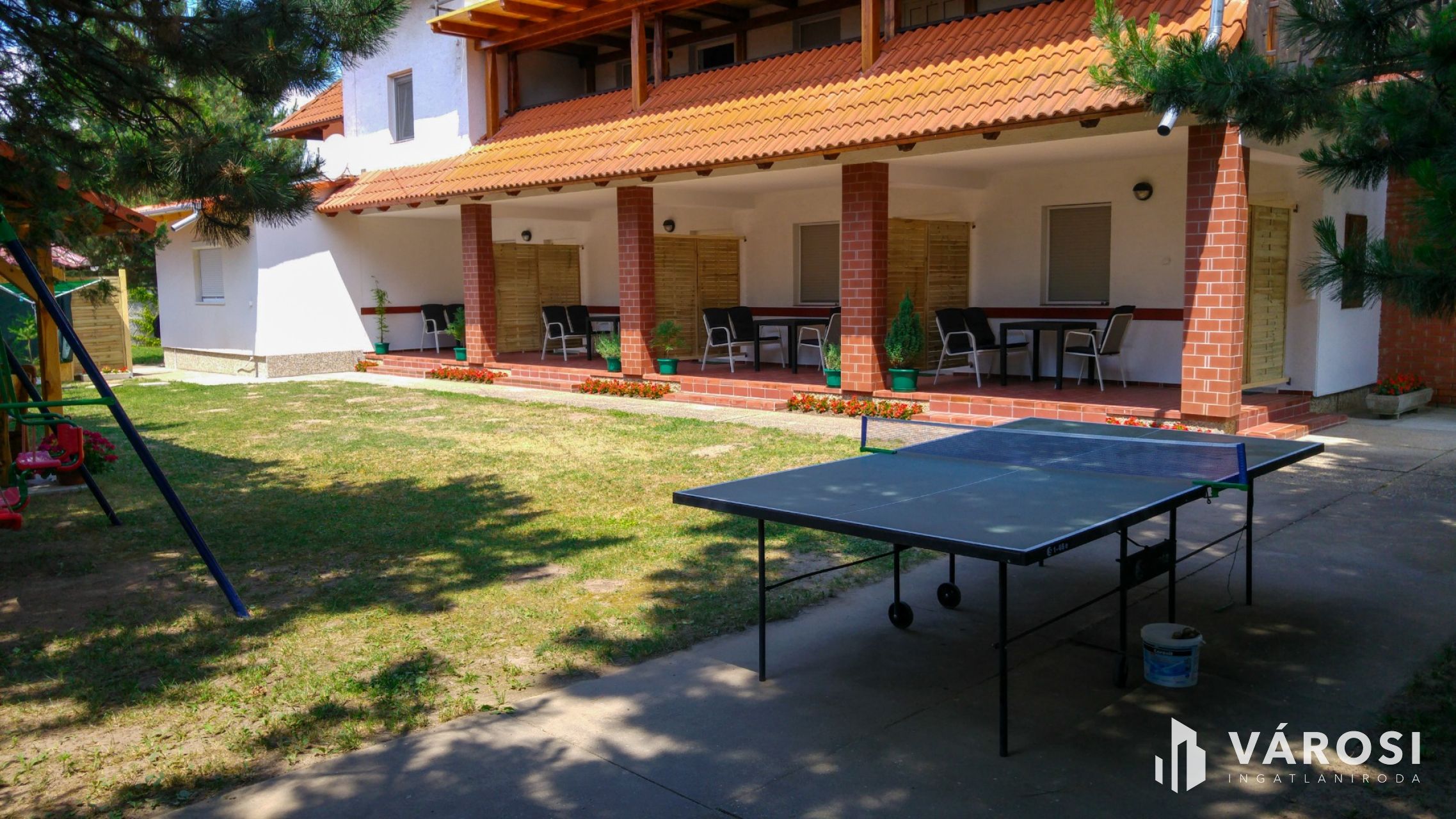 A telek 980 m2-es. Az udvarban kialakításra került egy mosókonyha, amely 2 mosógéppel, 2 szárítógéppel és 1 mosogatógéppel van felszerelve, hogy az apartmanházhoz kapcsolódó összes mosási, szárítási és mosogatási feladatokat helyben el lehessen végezni. A kertben ping-pong asztal, hinták, valamint egy 50 m2-es épített szaletli található.