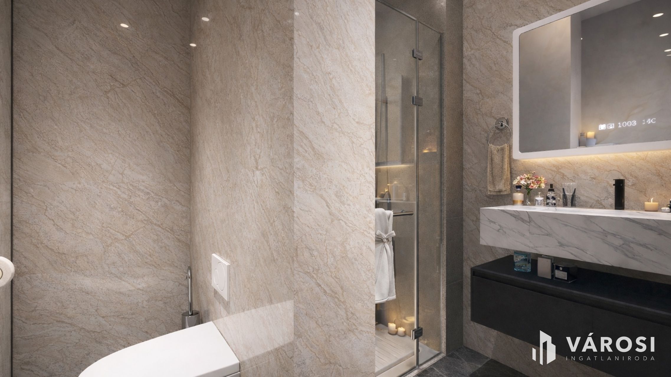 A lakás konyha nélkül kerül átadásra, így azt teljes mértékben saját ízlésére szabhatja.