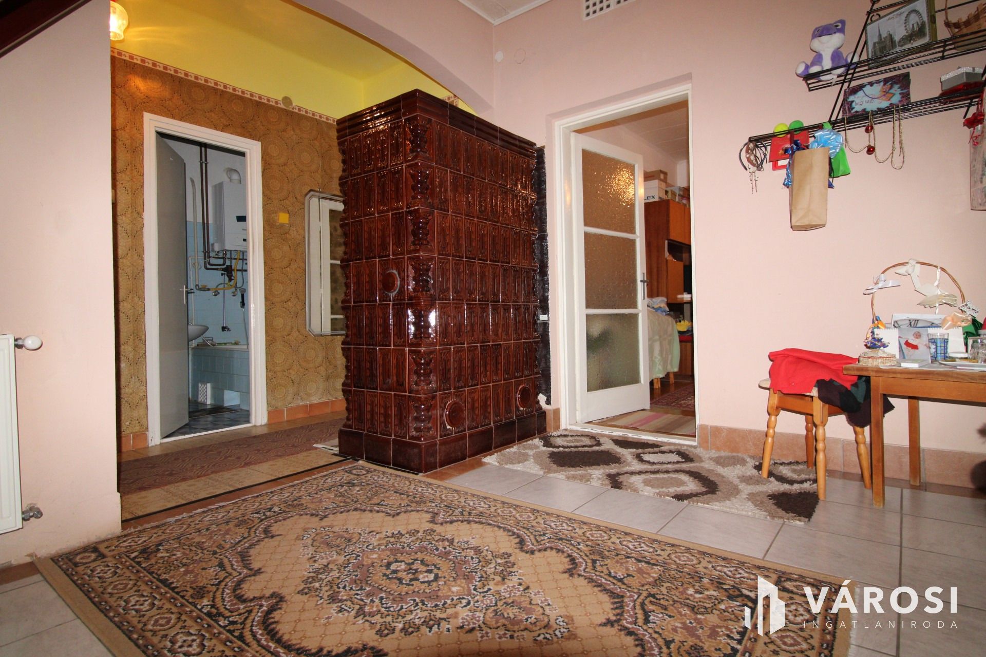A fűtést és a melegvizet egy kombi kazán biztosítja radiátoros hőleadással, de beépítésre került egy hangulatos csempekályha is.
