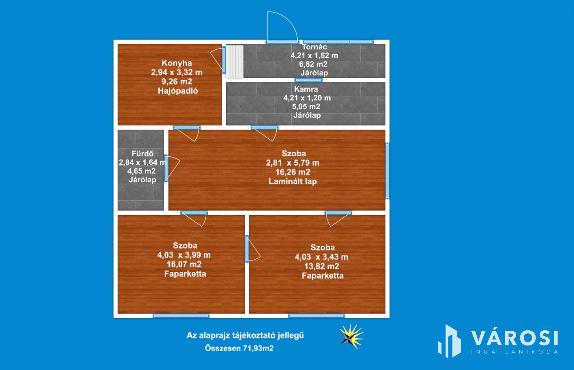 A ház délnyugati fekvésű, napfényes ingatlan.
