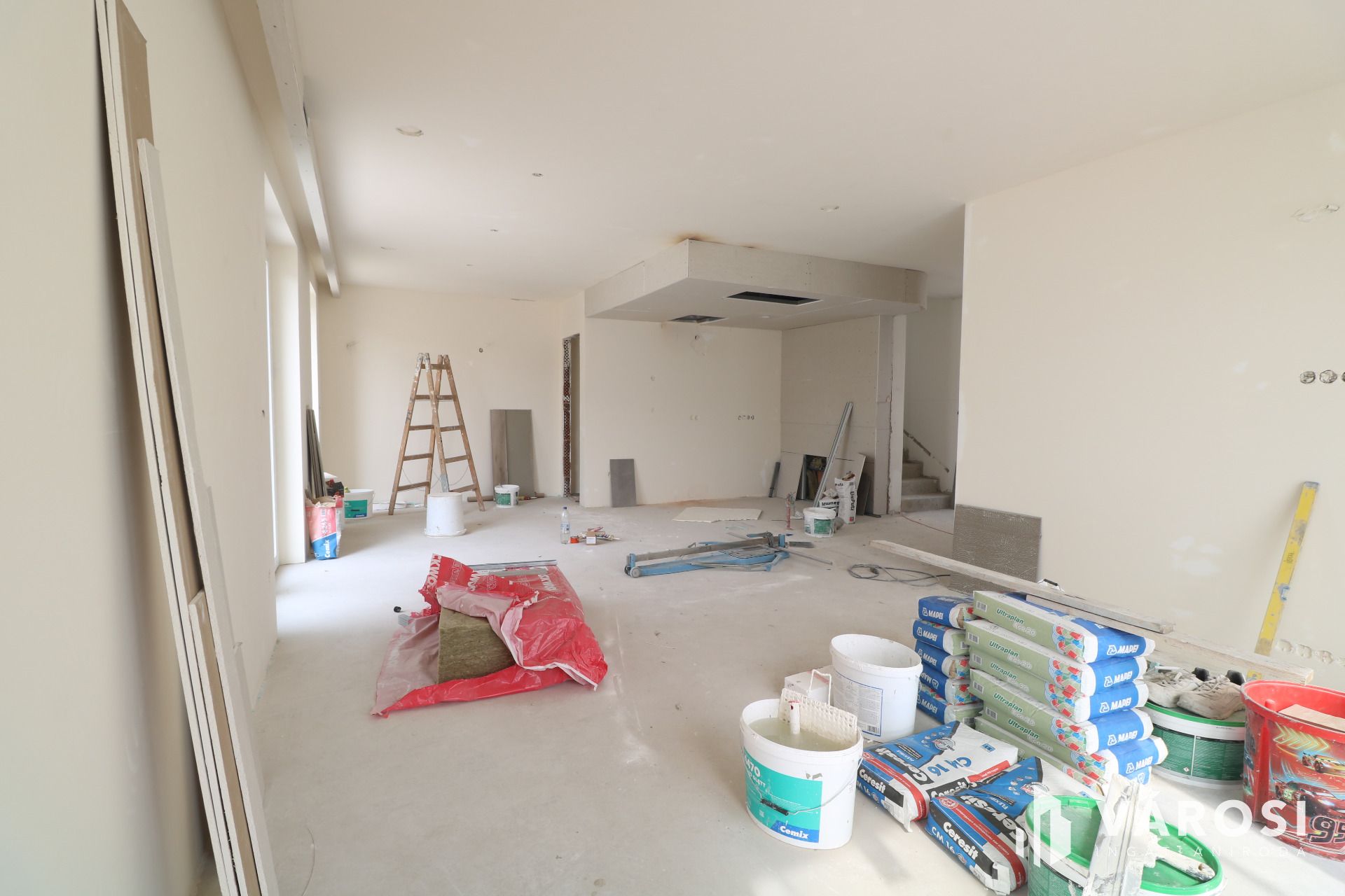 - Nappali, konyha,3.szoba, 1 fürdő, 2 WC, gardrób, háztartási helyiség, tároló,garázs,terasz.patio.