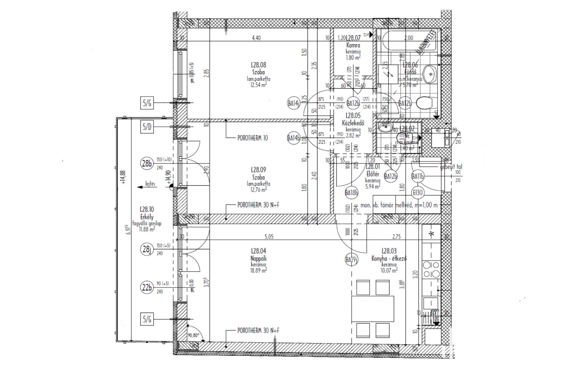 Az ingatlan 72 m² lakóterülettel rendelkezik, melyhez egy belső udvarra néző, fedett 12m²-es erkély kapcsolódik.