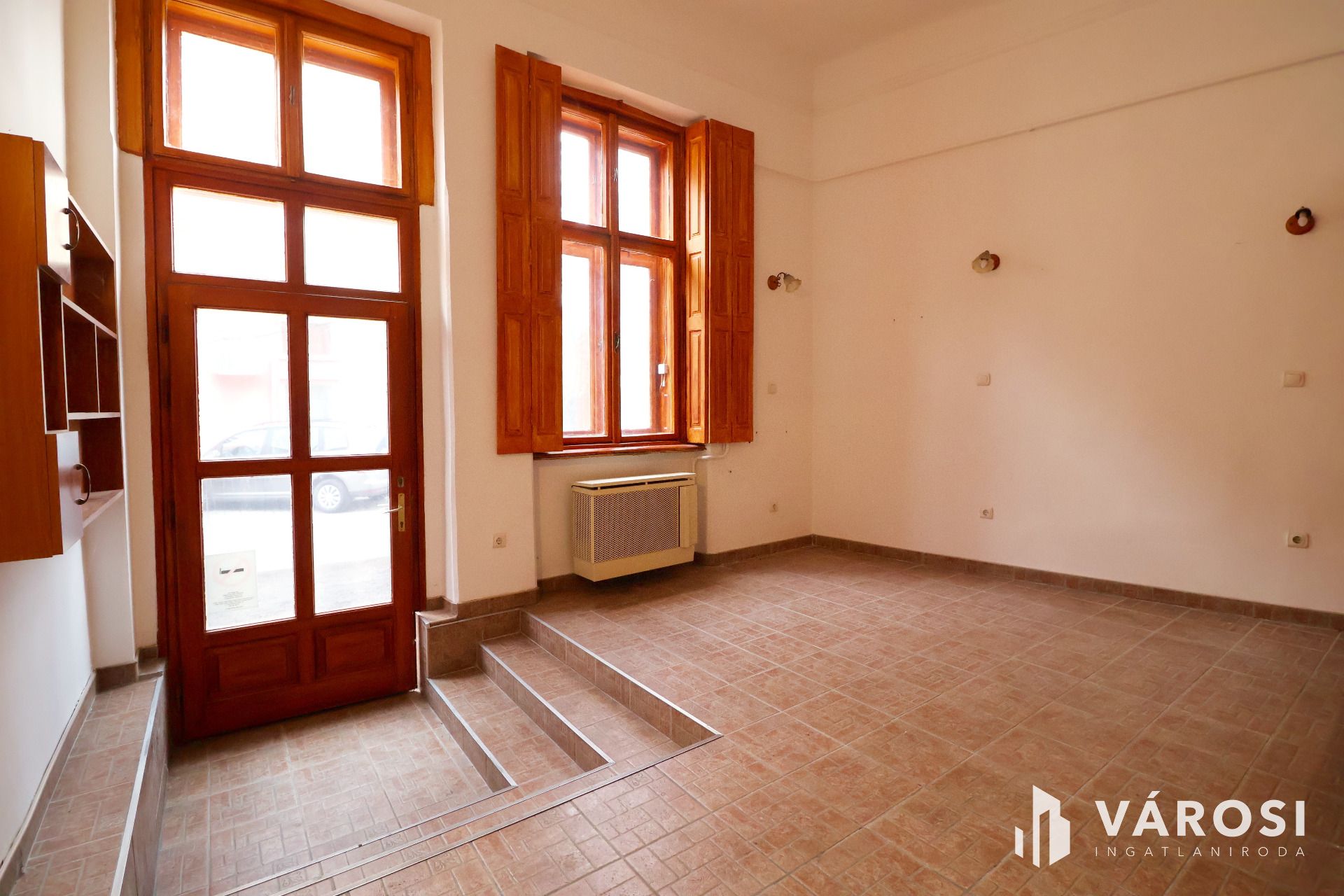 Hódmezővásárhely belvárosában eladó 48,00 m2 alapterületű, tégla építésű, üzlethelyiség. Az utcáról ~26,00 m2 alapterületű eladó térbe léphetünk, (mely alatt pince is található) innen nyílik a ~12,00 m2 Raktár, Tusoló és Tea konyha. Az előtérből a Wc és még egy kisebb tároló helyiség nyílik. (lásd: alaprajz)