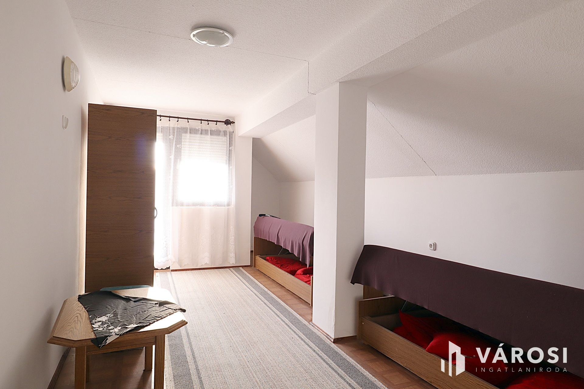 A lakószint három és fél szobája lehetővé teszi, hogy minden családtag külön teret kapjon, miközben a külön bejáratú tetőtérben vendégeket fogadhat, vagy kialakíthat még egy lakást. Ehhez csak egy konyha kell fent, fürdőszoba mindkét szinten már ki van alakítva. A kényelmet külön fürdő és WC, valamint redőnyözött ablakok is fokozzák. Az otthon berendezett és teljesen felszerelt, így Önnek már csak költöznie kell!