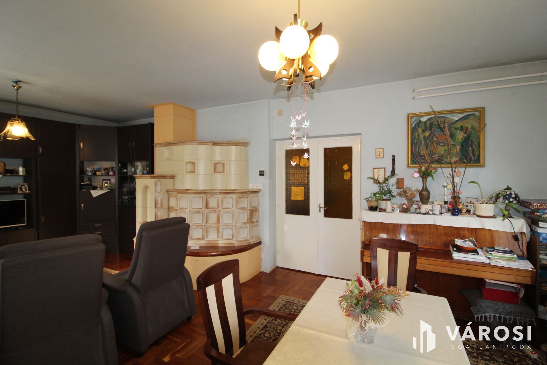 A nappali ablakai az utcára illetve a kertre néznek. A nappaliban csodálatos csempekályha ad plussz lehetőséget a téli hidegben az fűtésre. A konyha gépesített , melyeket az ár tartalmaz a konyhabútorral együtt.