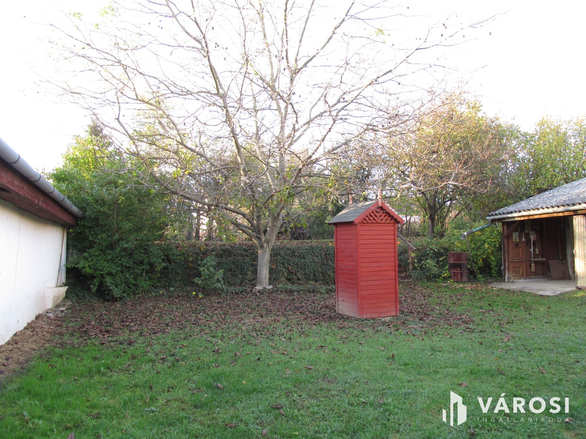 Az udvarban kényelmes kertrész található, ideális lehetőség a pihenésre és a kikapcsolódásra. A kert be van ültetve gyümölcsfákkal, amely 10 db meggyfát, egy diófát tartalmaz, továbbá egy mogyoróbokor és málnatövek is fellelhetőek.
