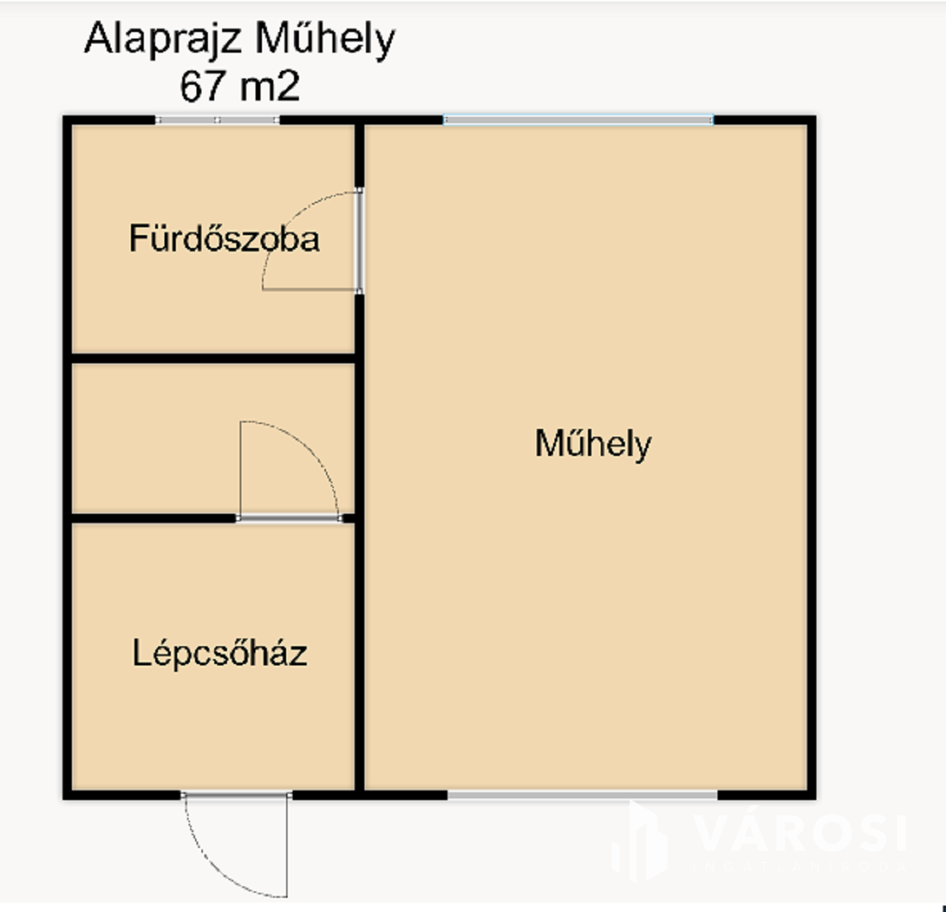 A másik épületben egy 67 m2-es lakás, egy 55 m2-es lakás és egy 67 m2-es műhely található.