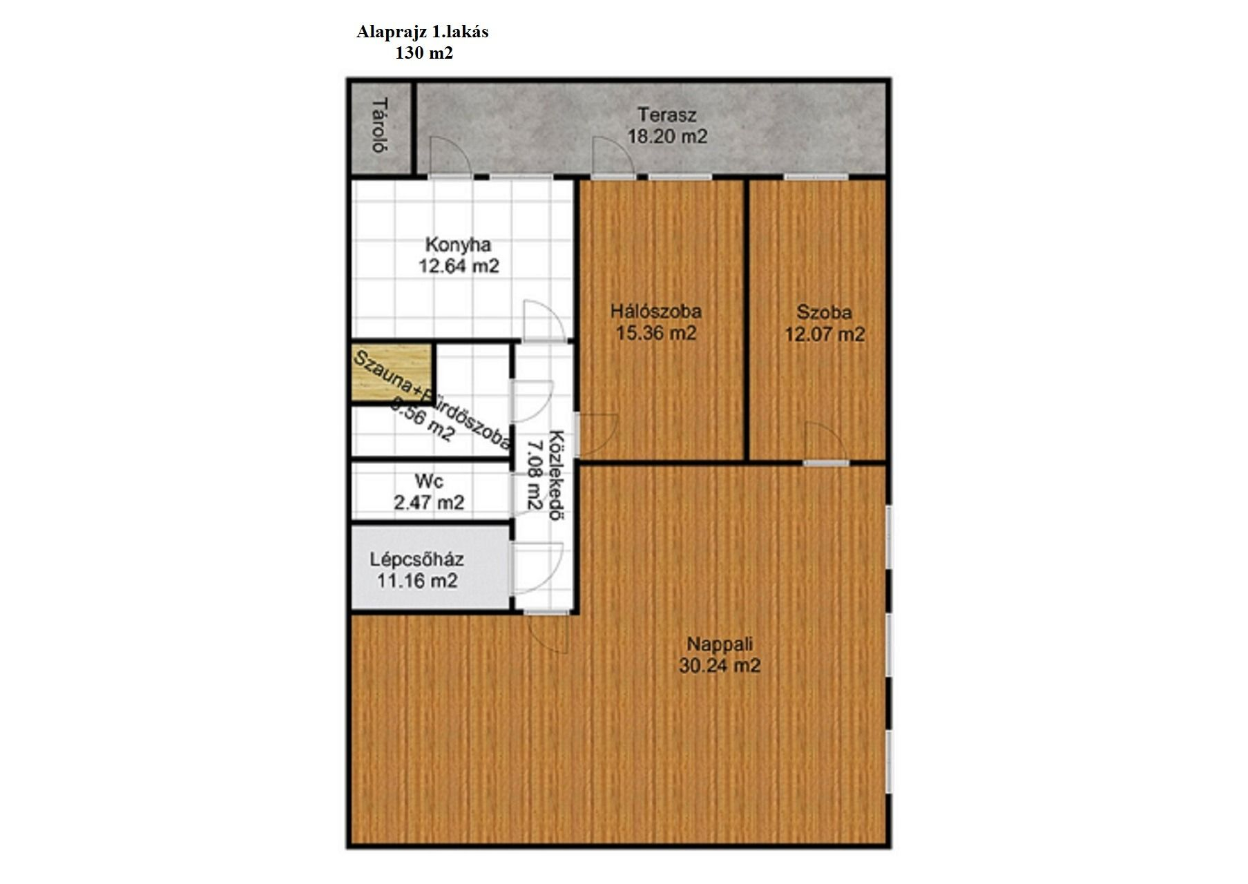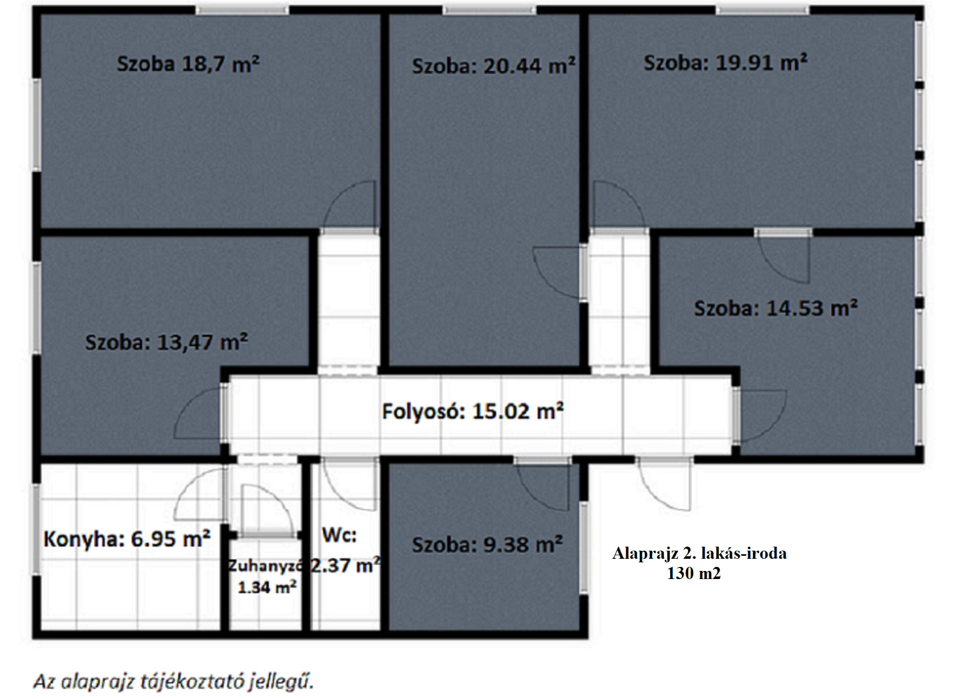 Az ingatlan 2 külön helyrajzi számon található. Az első épületben 1 db 130 m2-es lakás, 1 db 130 m2-es iroda, és egy 150 m2-es autóműhely került kialakításra.