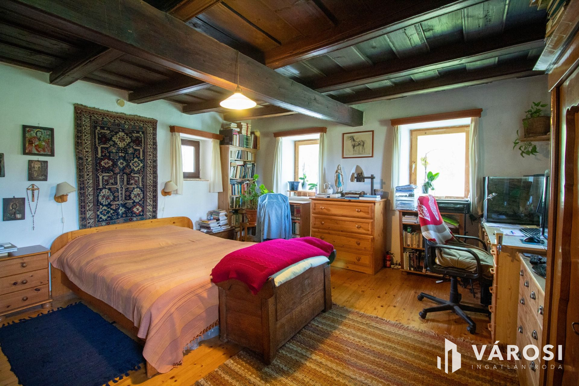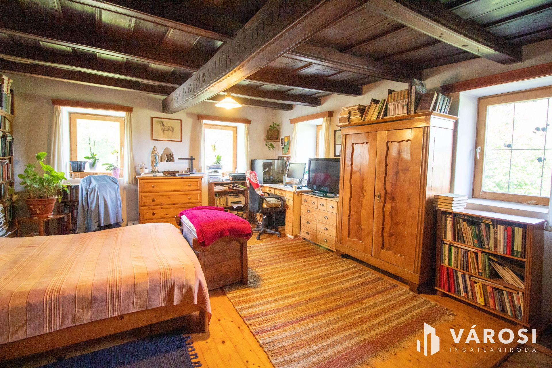 Az eredeti hangulatot megőrizve ebben a látszó gerendás házban a berendezés sem hétköznapi!