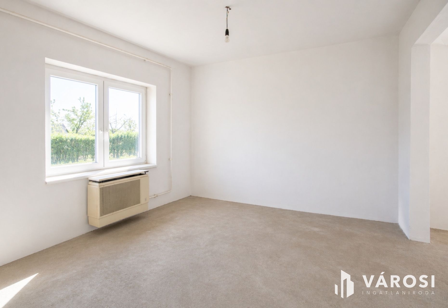 A fűtés jelenleg konvektoros rendszerrel részben megoldott, a nappaliban megtartásra került, így a további rendszer kialakítása szabadon tervezhető.