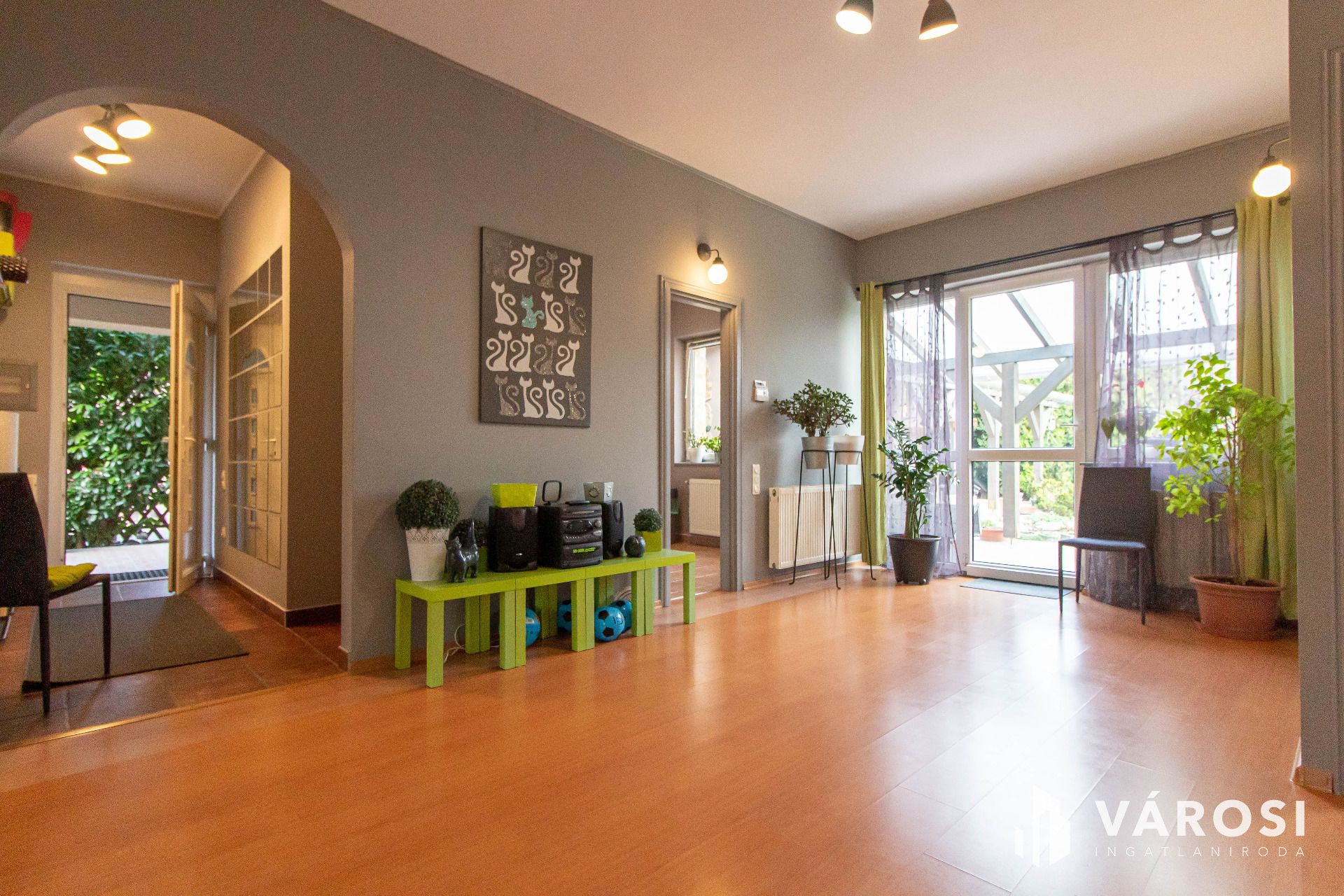 A 122m2-es ingatlanban található egy amerikai konyhás nappali, mely terasz kapcsolatos, két hálószoba, egy dolgozószoba, gardrób, háztartási helyiség, mosókonyha, fürdőszoba, külön WC.