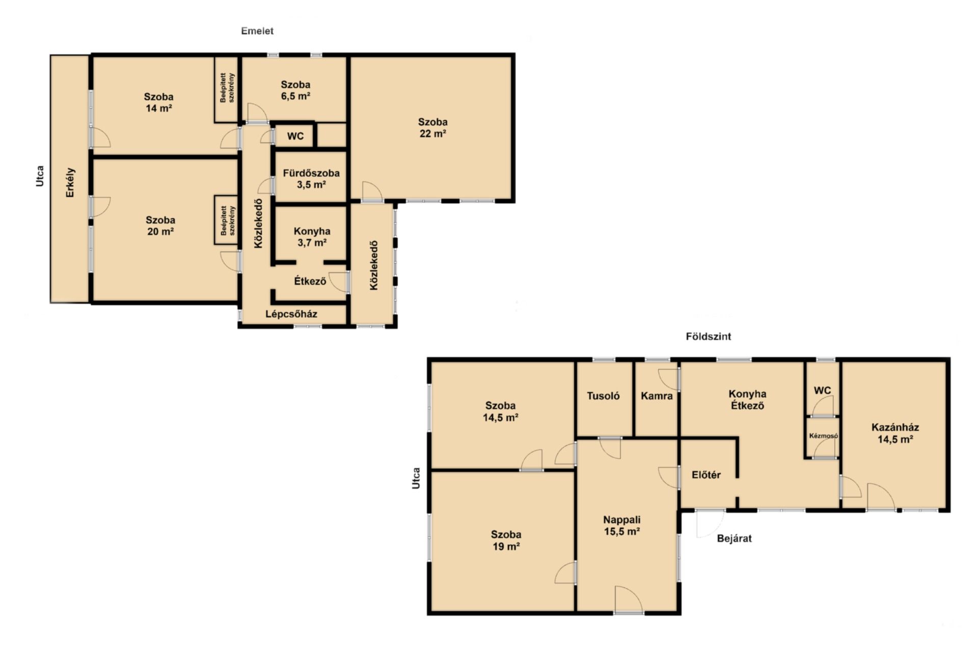 - az utcai két szobából közös erkélyre jutunk