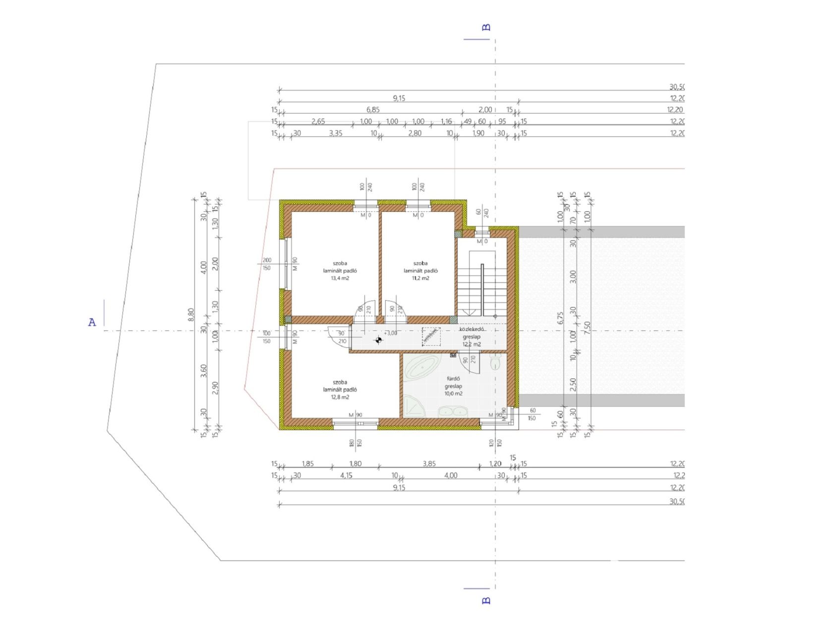 EMELET: 3 hálószoba, zuhanyzós-kádas fürdőszoba, gardrób
