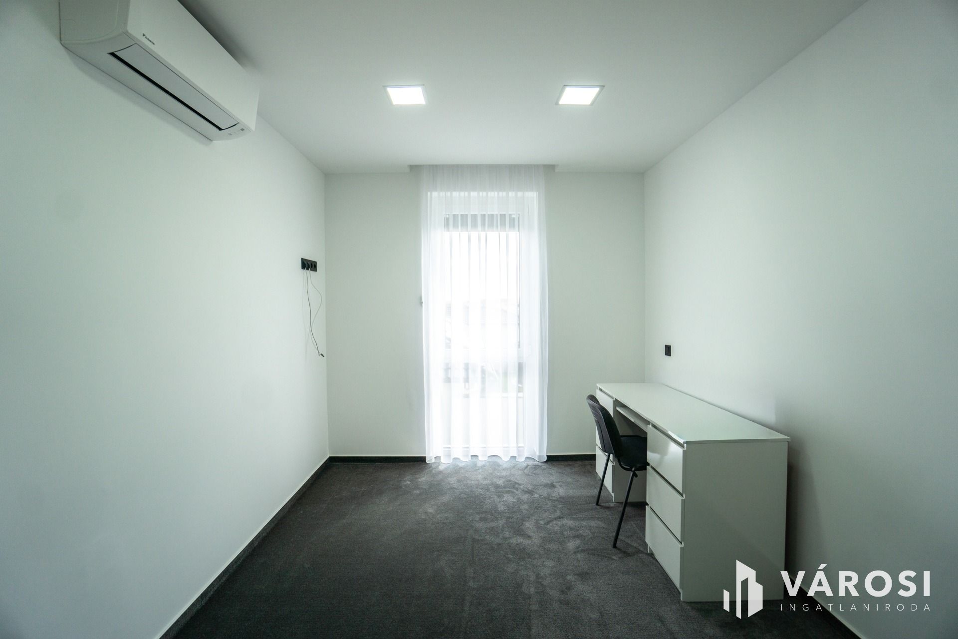Az ingatlan téglaépítésű, lapos tetős, belső késtzintes kialakítású, modern stílusban épült 2 éve.