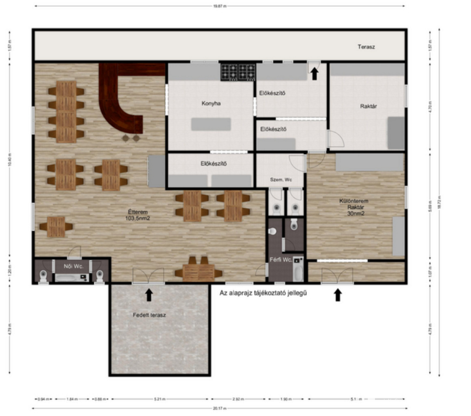 A vendéglátó egység eredeti funkciója szerint üzemel, de az adottságai alapján más tevékenységre is alkalmas lehet,