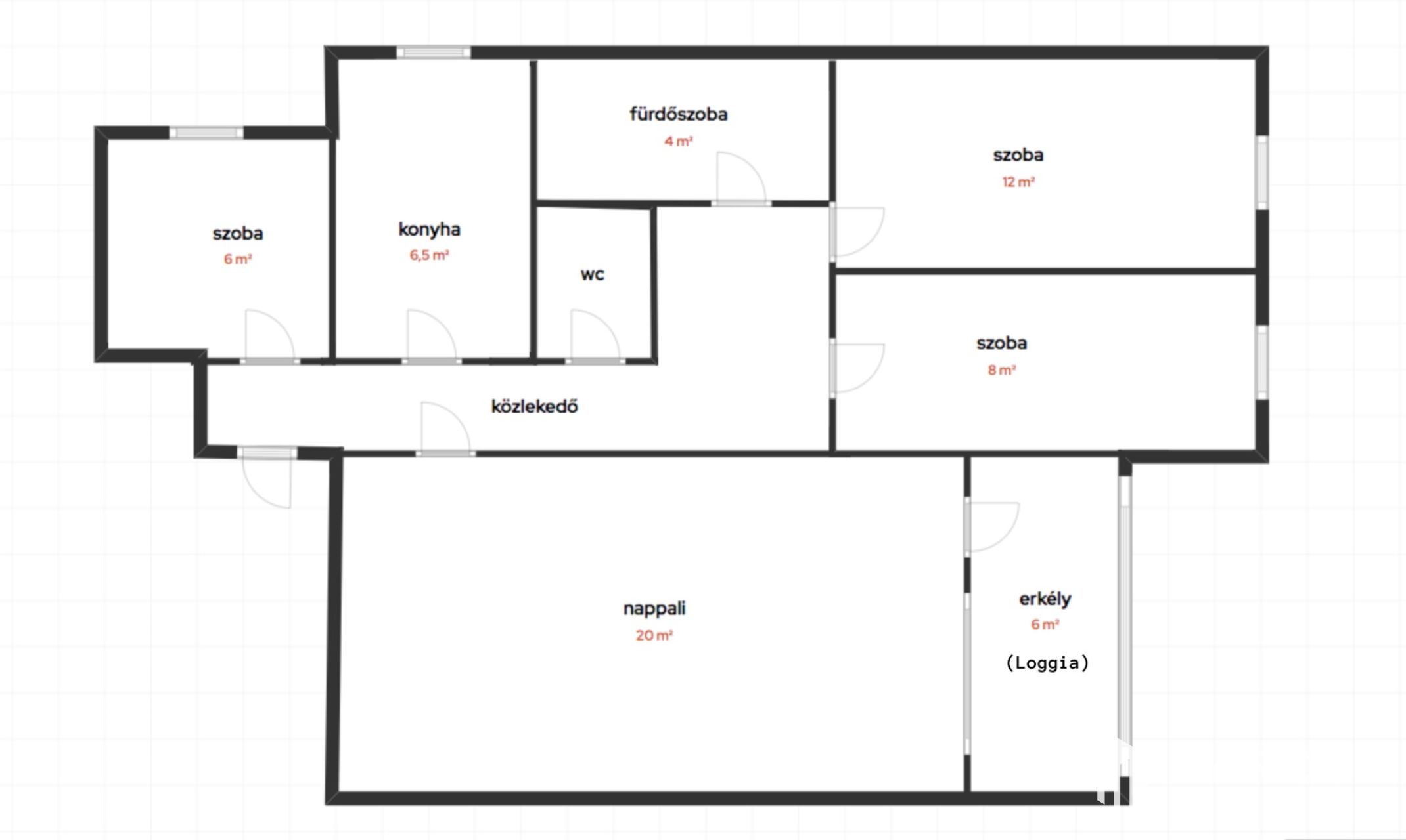 - Erkély (loggia): 6m2