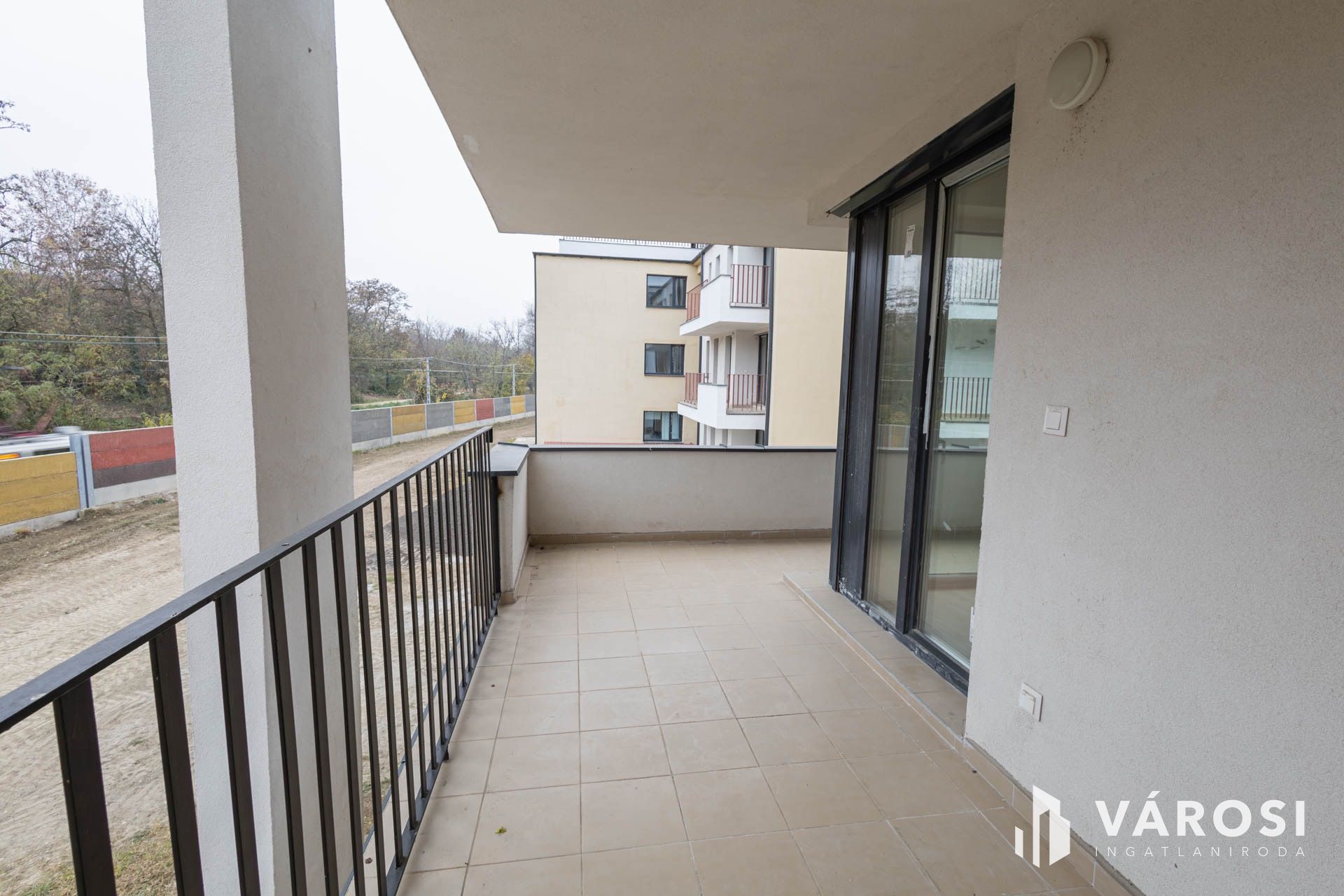 A hirdetésben szereplő lakás a D épület földszintjén emeletén található, amerikai konyhás nappali +2 hálószobás elrendezésű.