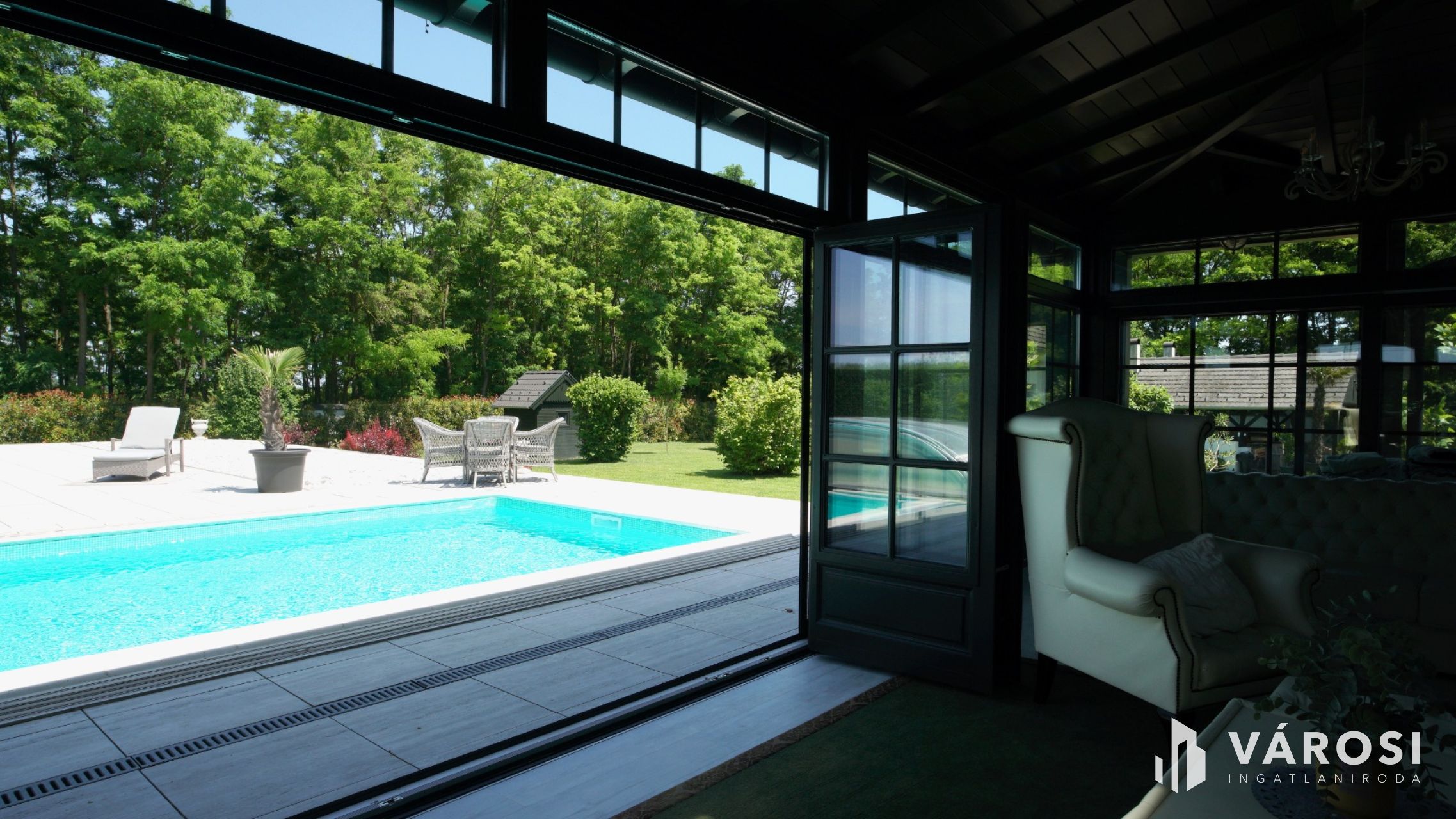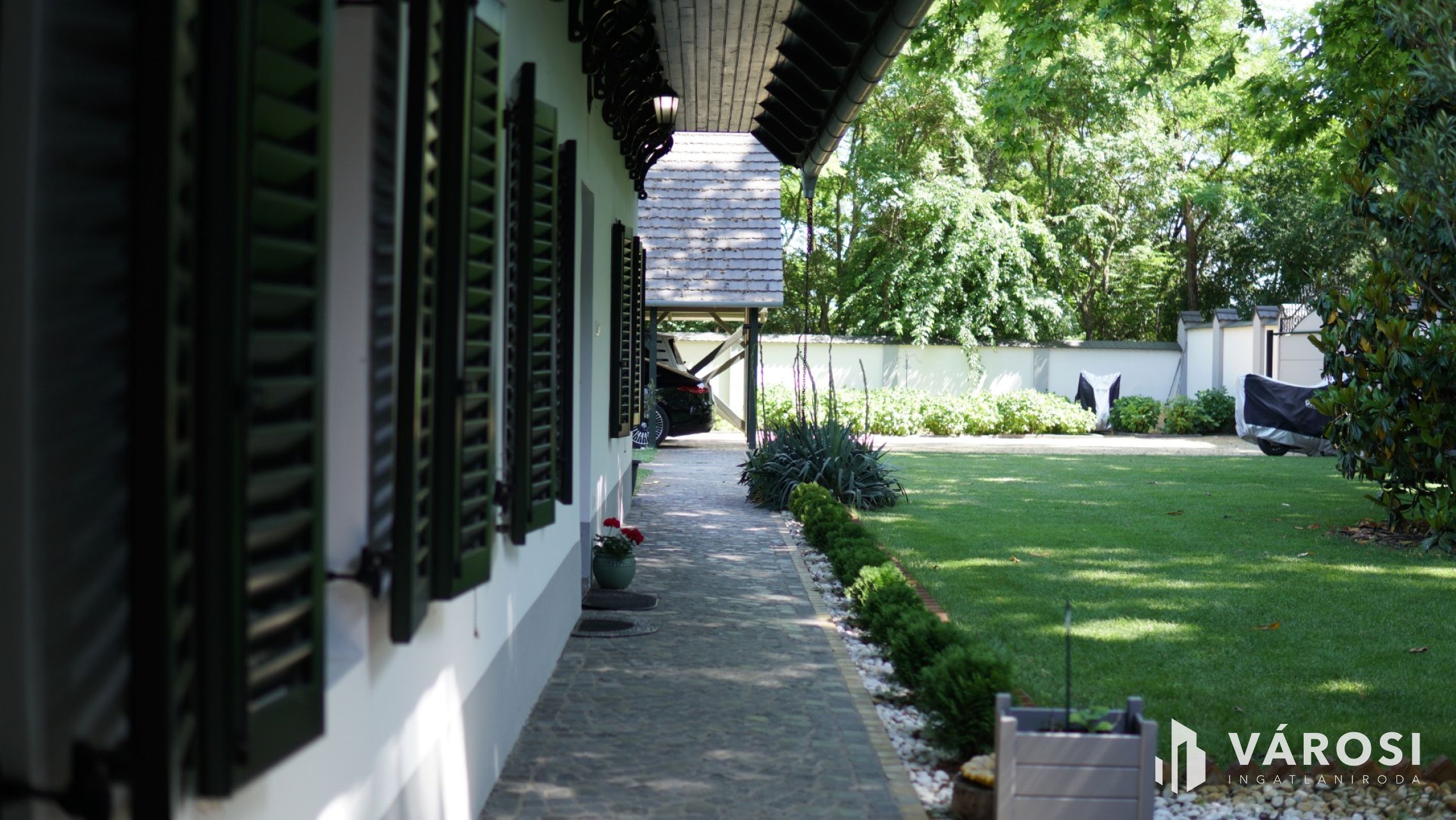 In the peaceful, tranquil setting of Zsombó, a manor house accessible via a private road and completely free from through traffic awaits its new owner. The impressive manor, built between 1903 and 1905 and meticulously renovated, offers 333 m² of living space, 4 bedrooms, 3 bathrooms, a walk-in closet, a huge living room, and a large enclosed terrace, all evoking a true aristocratic lifestyle. The residence stands on a stunning, landscaped 4,500 m² plot, which is also for sale with an additional acacia grove (3,875 m²), a 600 m² utility building, and a 667 m² private road.