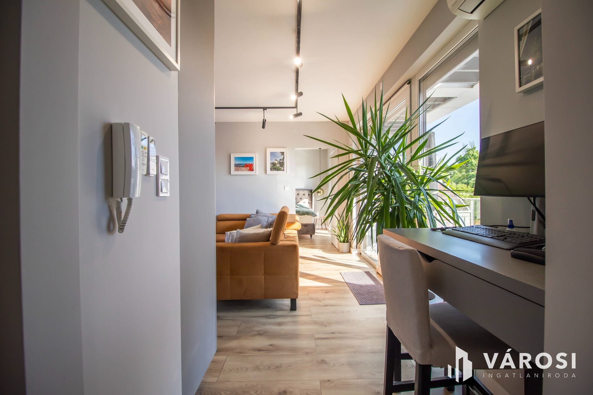 This residential park was built a few years ago in a green area close to the center of Velence, and on its top floor, a luxury penthouse apartment constructed with premium materials is for sale. This living room + 1 bedroom apartment is surrounded by huge terraces on both sides, and is looking for an exacting new owner who desires a unique property in a quiet location. It is being sold fully furnished and equipped as shown, so you only need to bring your personal belongings. The apartment can be moved into immediately!