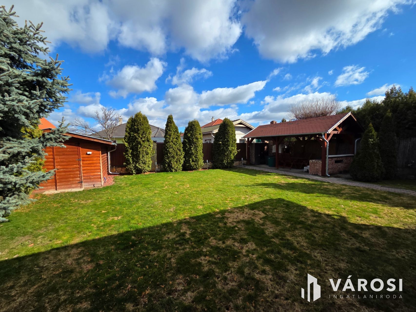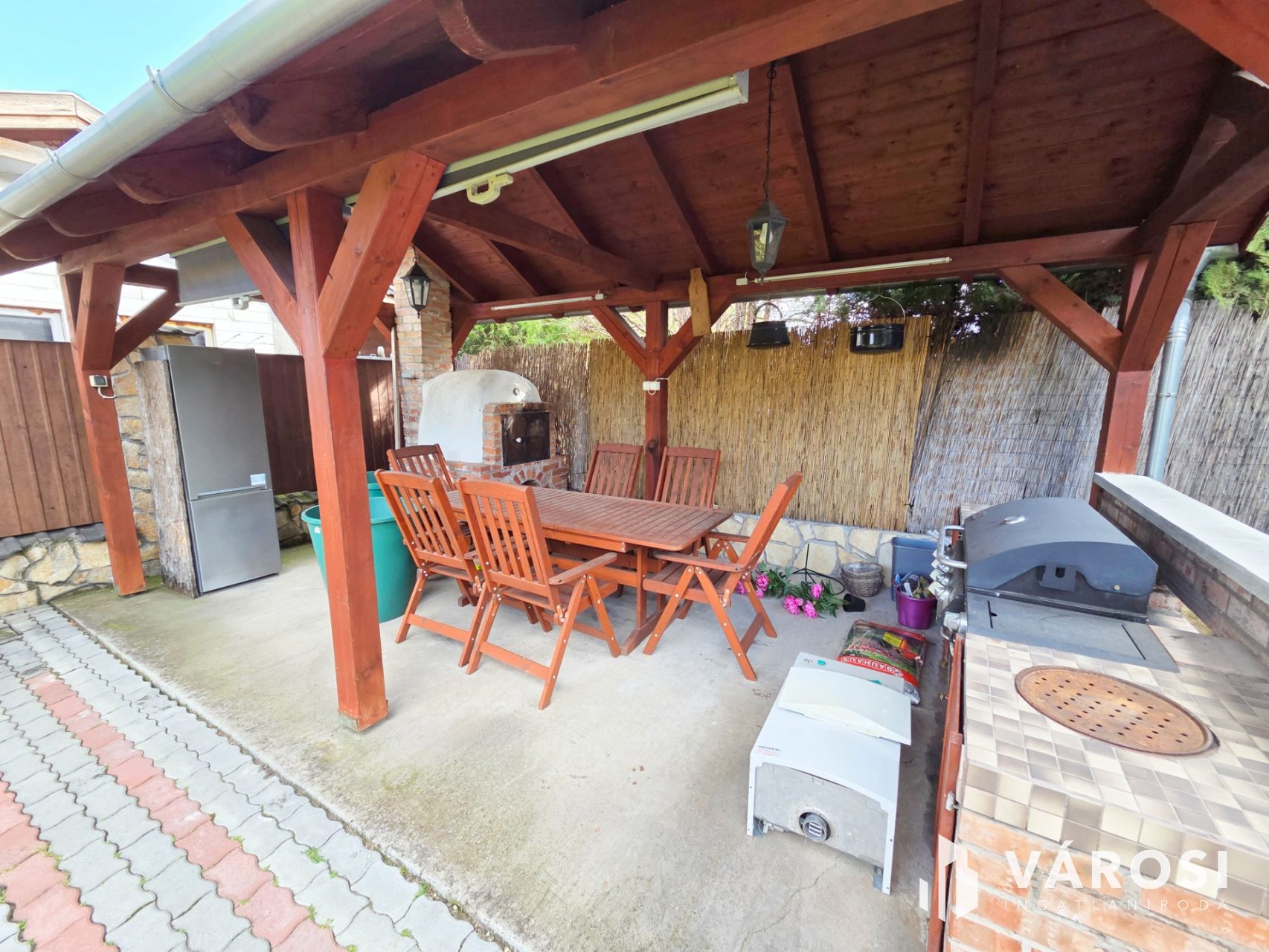 - Fedett, kiülős sütögetőhely, kemencével, grillezővel, kinti hűtőszekrénnyel, kerti bútorzattal