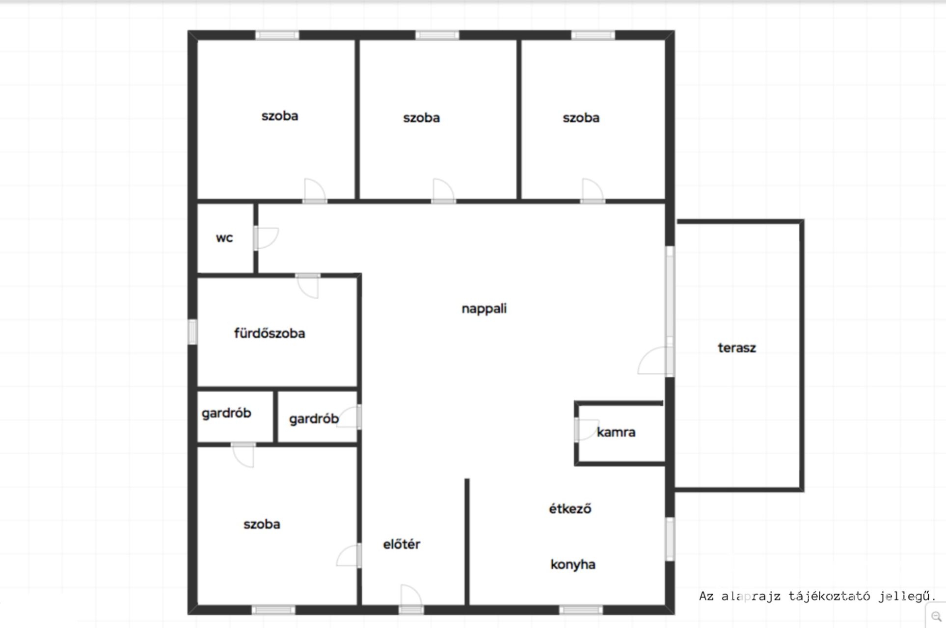 - Elosztás: Amerikai-konyhás nappali + 4 szoba, 2 gardrób, fürdő és wc különhelyiségben, kamra