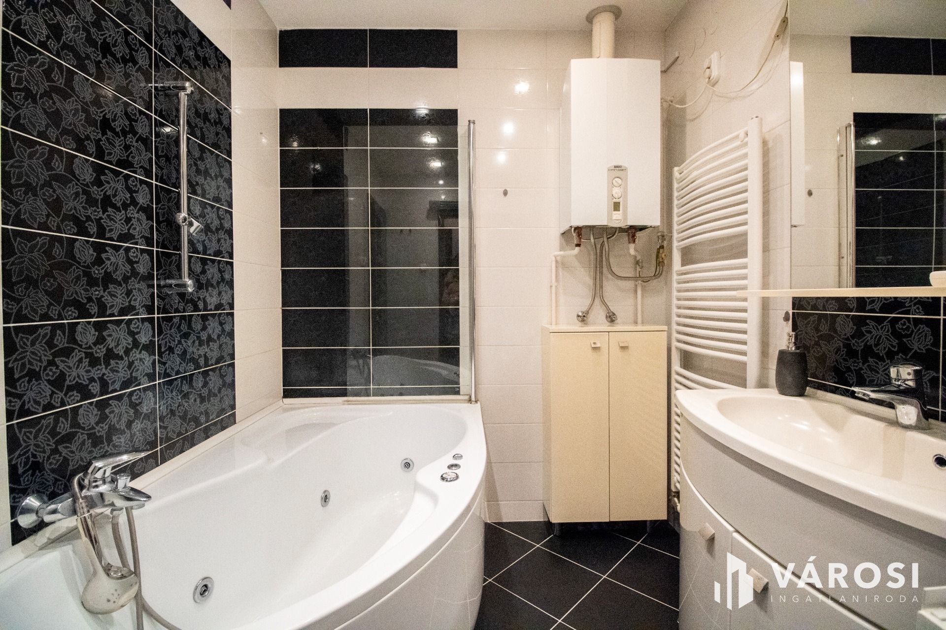 Az ingatlan teljes, egyedileg gyártatott bútorozattal együtt eladó, a konyha pedig vadonatúj, modern bútorral és minőségi konyhagépekkel felszerelt. A műanyag, dupla üvegezésű, redőnyös nyílászárók, a több ponton záródó biztonsági bejárati ajtók, a modern beltéri ajtók, valamint a prémium burkolatok és minőségi szaniterek mind a gondos tervezést és a fiatalos, esztétikus megjelenést erősítik. A fűtést kombi gázkazán biztosítja, amit egy 3,5 kW-os hűtő–fűtő klíma egészít ki, továbbá a lakás háromfázisú árammal is rendelkezik. Az ingatlan fenntartása rendkívül kedvező, mivel két oldalról és alulról is fűtött és szigetelt.
