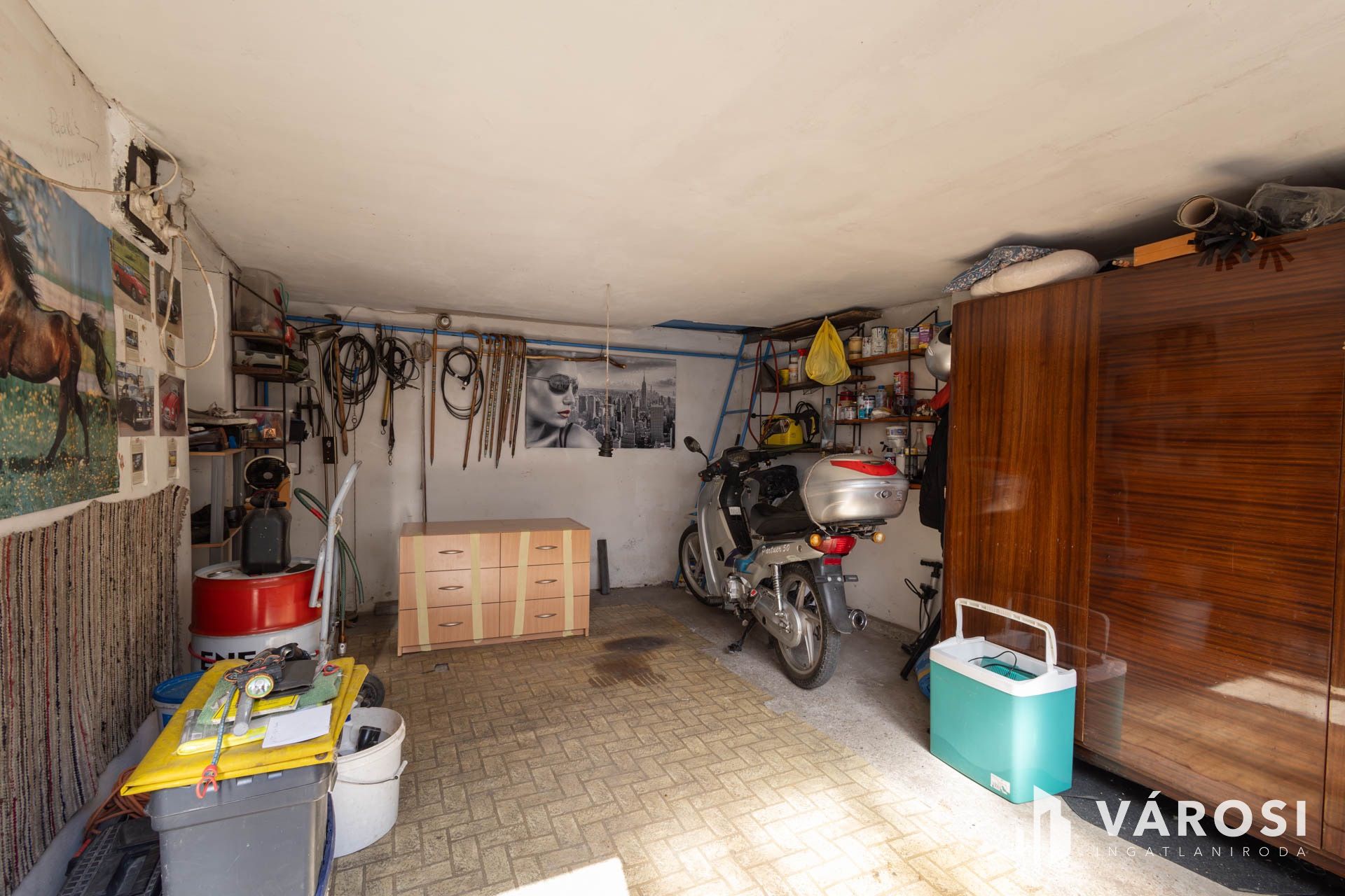 A három külön garázs jelenlegi mérete 57 m2, így akár autószerelőnek vagy bármilyen műhelynek alkalmas lehet.