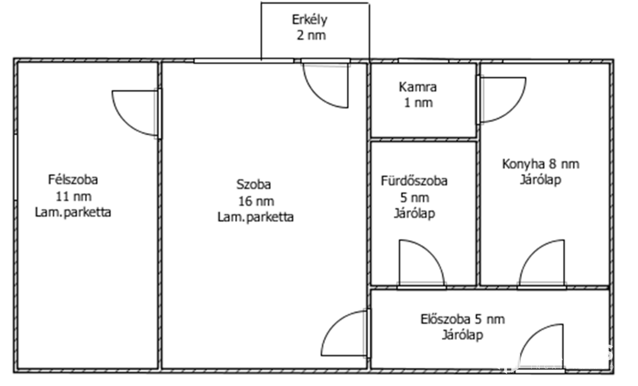 Az ingatlanban 1 szoba, 1 félszoba, konyha, fürdőszoba, előszoba, erkély található.