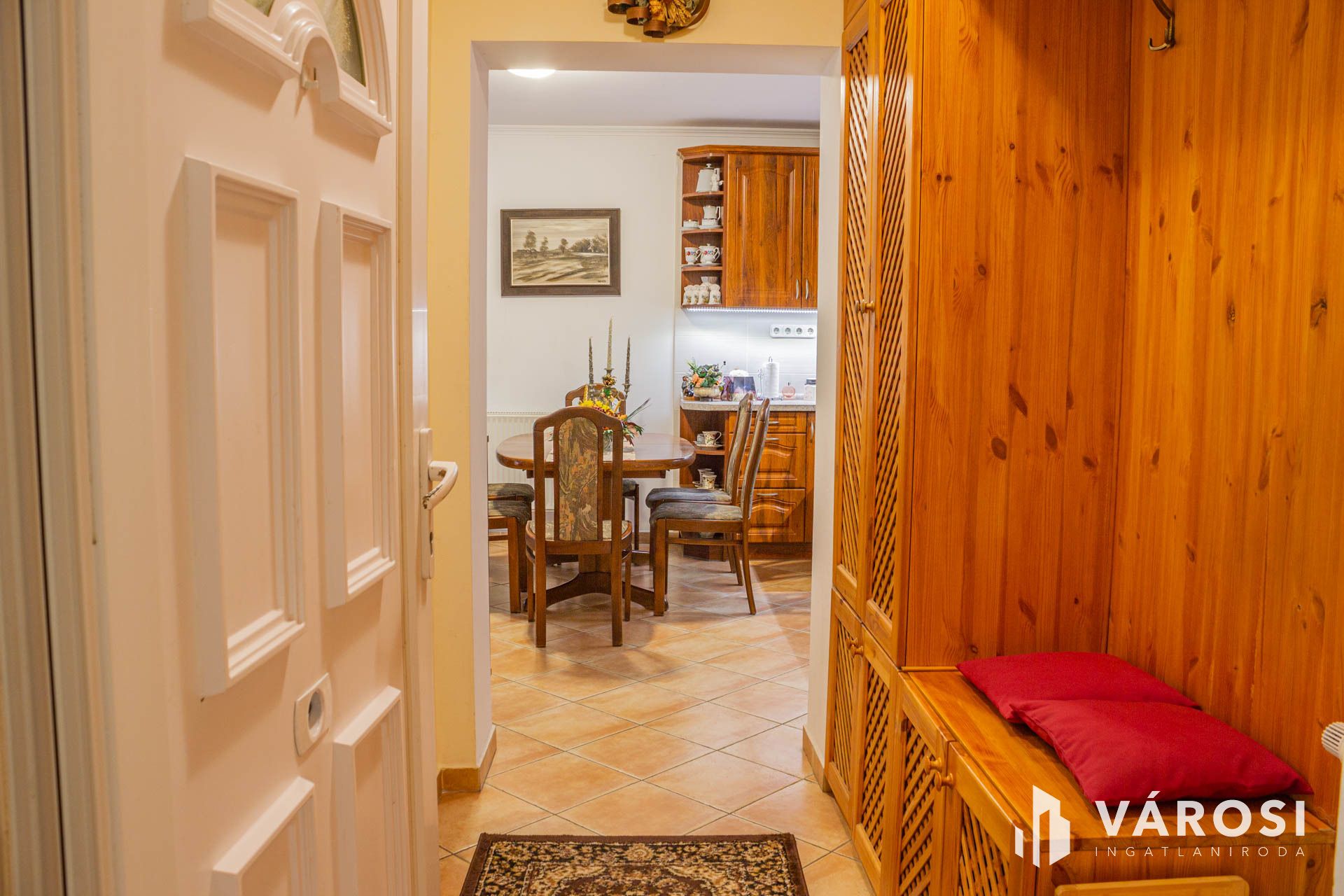 A tágas nappaliból egy erkélyre léphetünk, ami az utcára enged kitekintést.