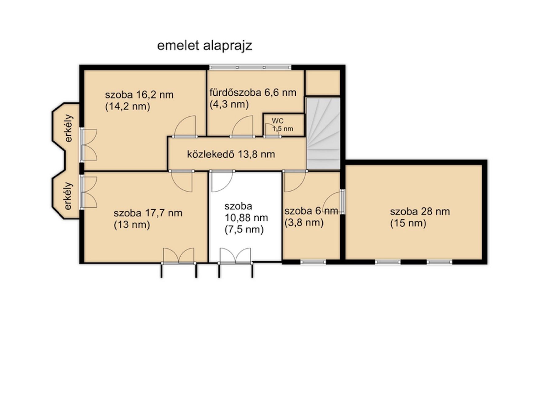 - az emeleten új borovi fenyő nyílászárók kerültek beépítésre (2 rétegű üvegezéssel)