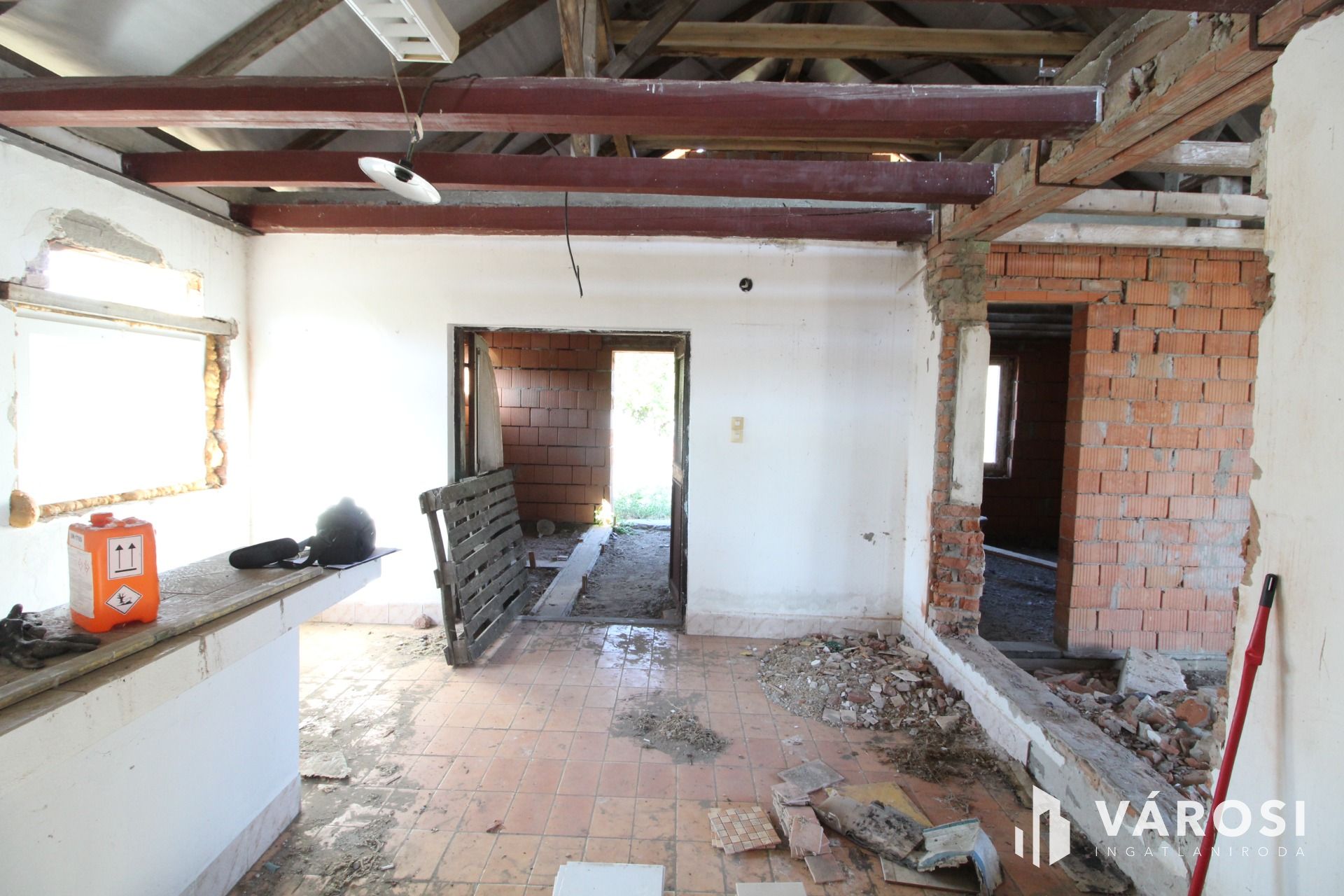 Az épület falazata tégla, beton alapokon. Az ingatlanban az áram be van vezetve. a vizet fúrt kút szolgáltatja, a szennyvíznek derítő van kialakítva. Az épület átalakítása megkezdődött, a homlokzatra műanyag nyílászárók kerültek. Az épület befejezése az új tulajdonos fantáziájára van bízva. Az alaprajzon feltüntetett helyiségek az eredeti tervek szerinti elképzelést mutatják. A tetőszerkezet új faanyagból készült cserépfedéssel.
