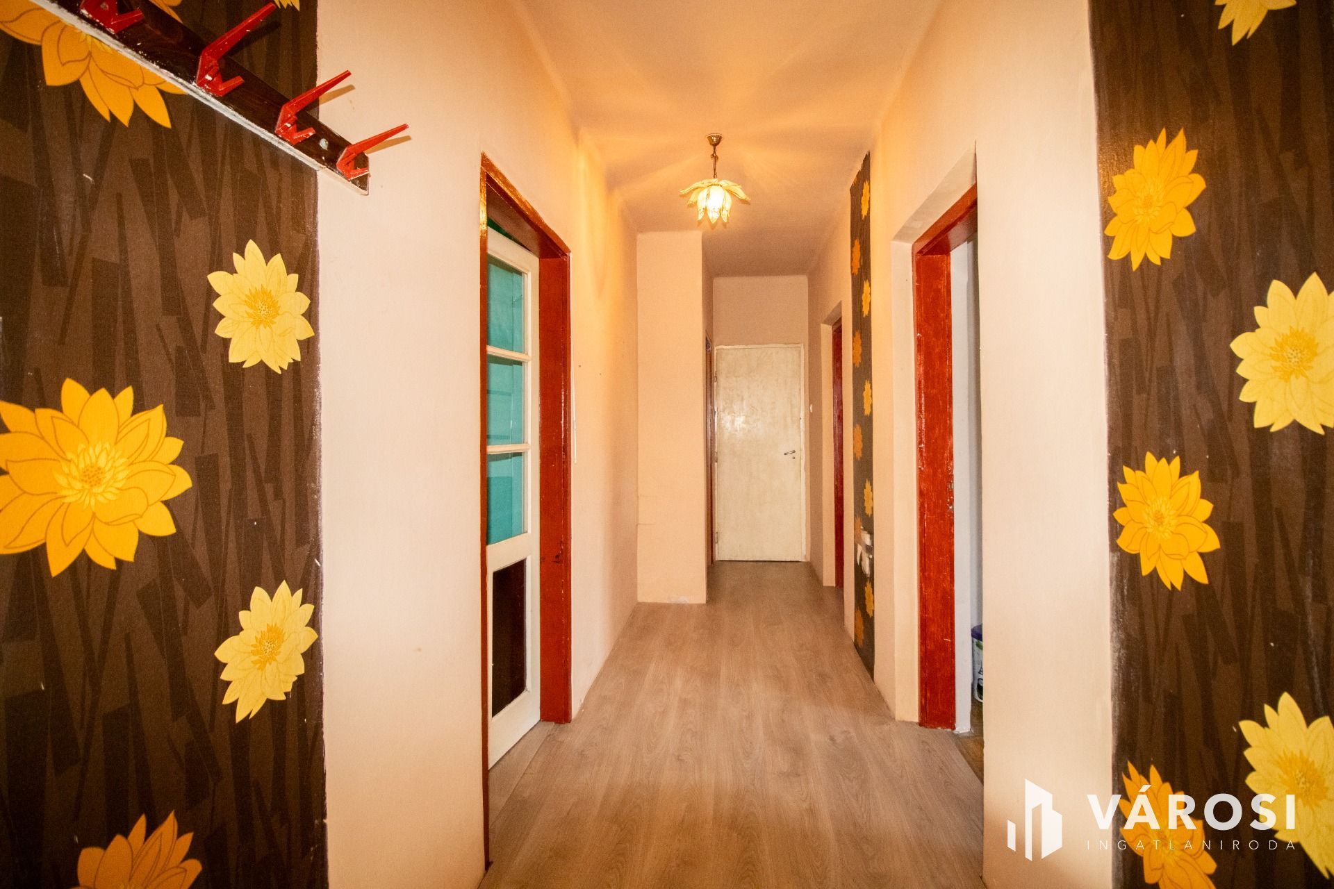 A ház helyiségei: nappali, két hálószoba, konyha és étkező egy térben, közlekedő, külön WC, valamint egy kádas fürdőszoba.