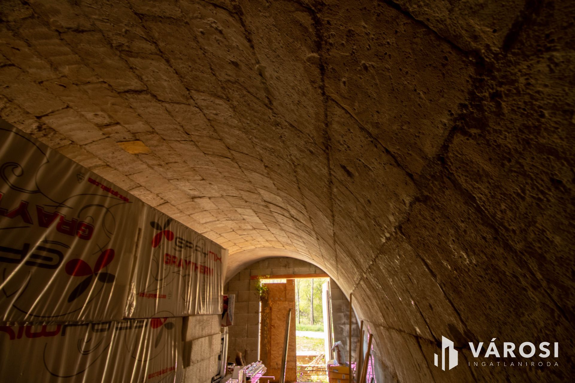 A telken található egy felújított, boltíves pince, amely: